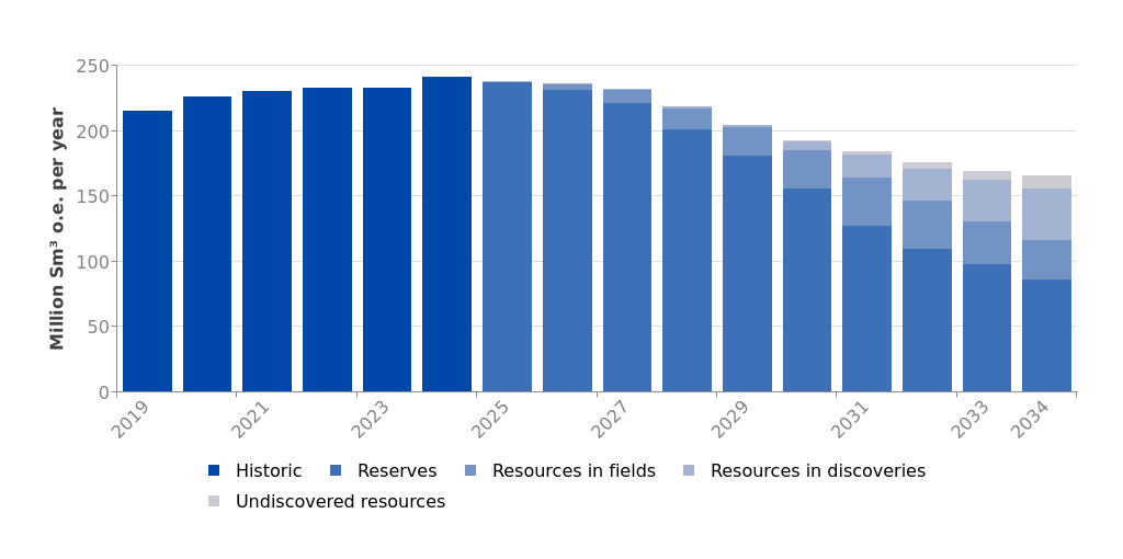 For the next few years, total production on the NCS is expected to be relatively stable, as the decline in production from aging fields is anticipated to be at the same level as the production from new fields that come on stream. In the long term, the number and size of new discoveries will be of crucial importance for the production level.